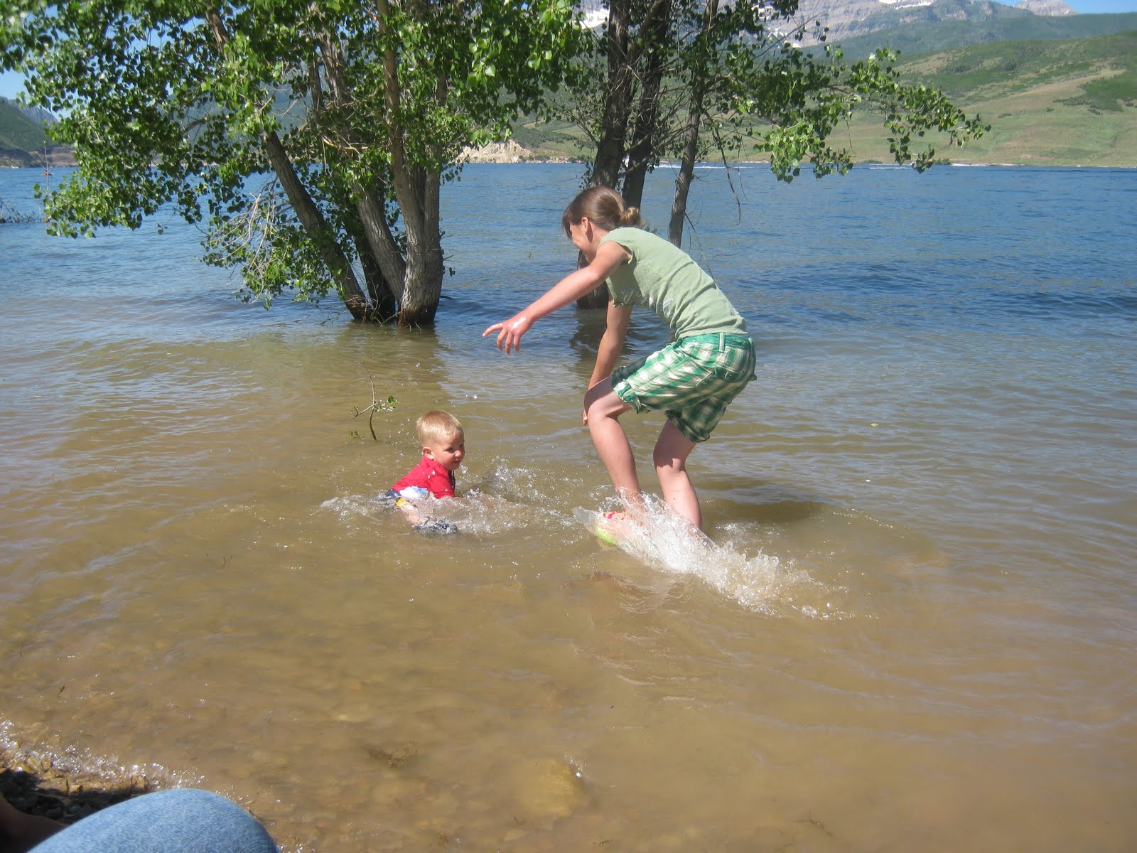 On Monday morning we headed up to Deere Creek to do some fishing. We got there a little late for the fishing I think because we didnt catch anything but it was fun. We got my mom and little sister Alexa to come with us. Alexa was good to chase my kids and play in the water with them.